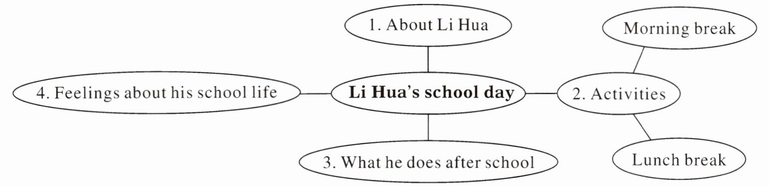 Li Hua is a junior high school student. He has four classes in the morning and three in the afternoon each day. During the morning break, he often does some morning exercise or plays a ball game with his friends. Lunch break is from 12:00 p.m. to 2:00 p.m. He goes to the canteen for lunch. After that, he usually goes to the book corner in the classroom to read interesting books. Classes end at 4:25 p.m. After school, he goes to the Ping-pong Club with Chen Ming. Li Hua thinks his school life is exciting and he enjoys every minute of it.