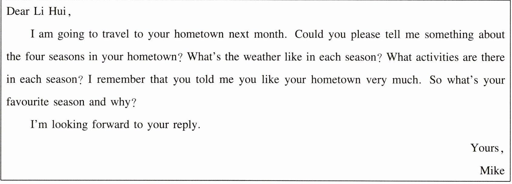 假如你是李辉,最近你收到了外国好友 Mike 的电子邮件,请你根据该邮件内容给 Mike 回复。