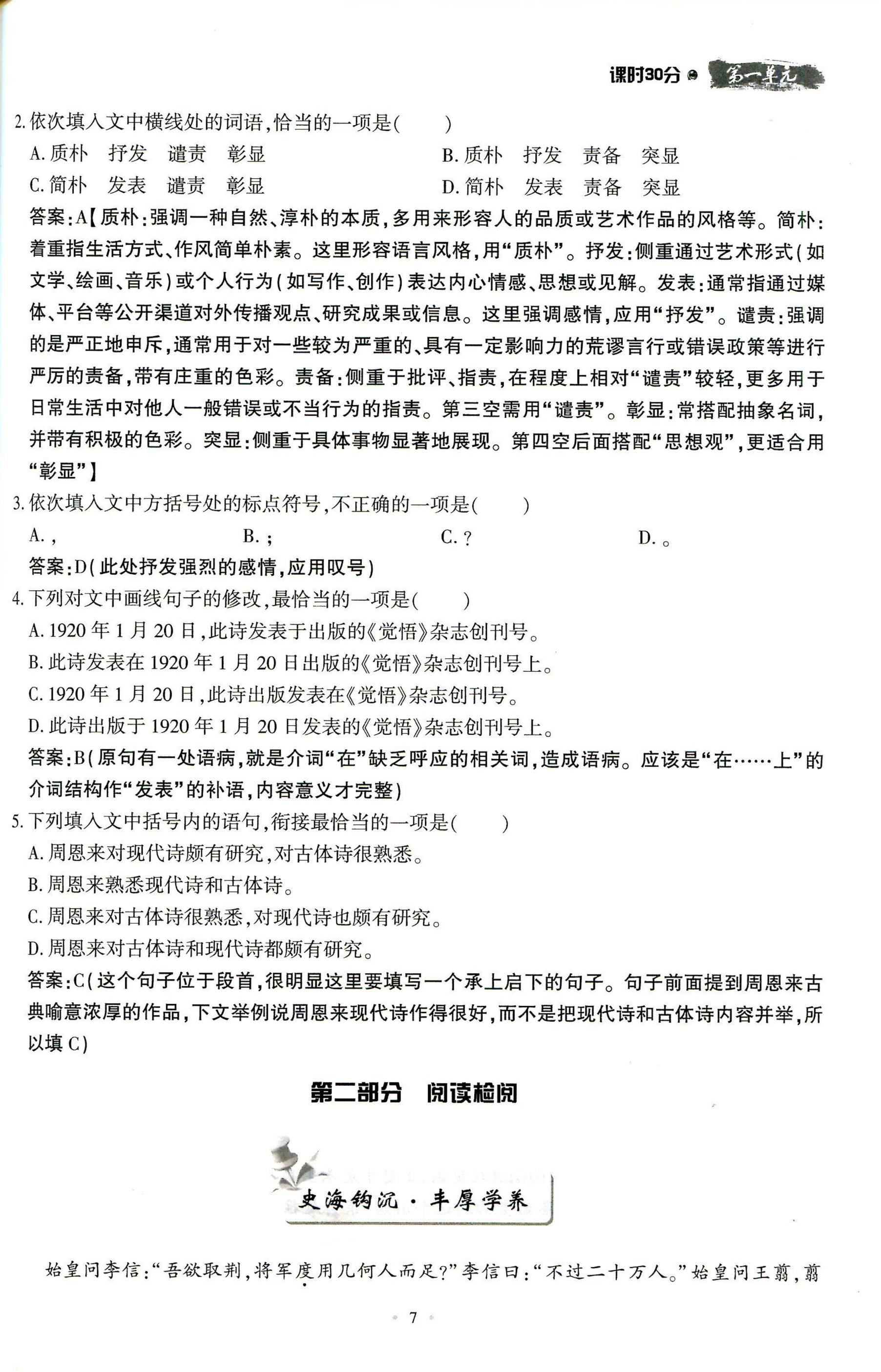 注:目前有些书本章节名称可能整理的还不是很完善,但都是按照顺序排列的,请同学们按照顺序仔细查找。练习册 2025年名校导练九年级语文全一册人教版 答案主要是用来给同学们做完题方便对答案用的,请勿直接抄袭。
