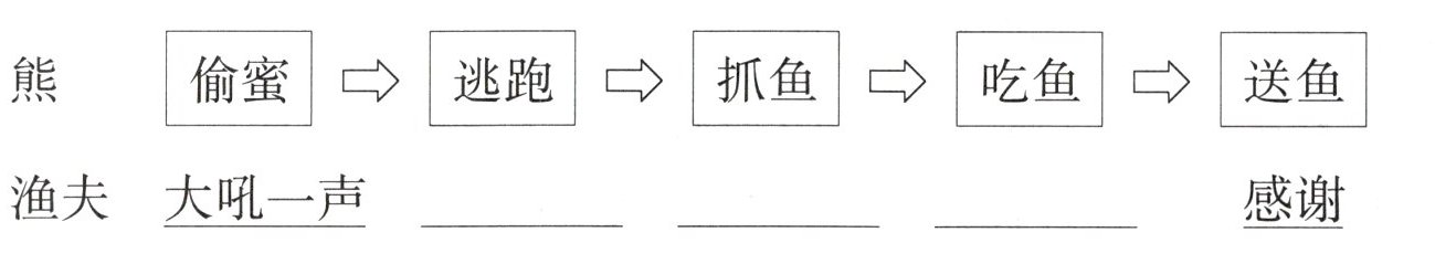 读故事,按照故事的发展,梳理熊的表现和渔夫的心理变化过程。
