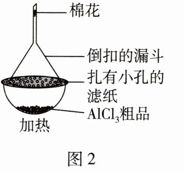 (1) 在无水气氛中提纯少量$\mathrm{AlCl}_{3}$的简易升华装置如图 2 所示,此处漏斗的作用是。