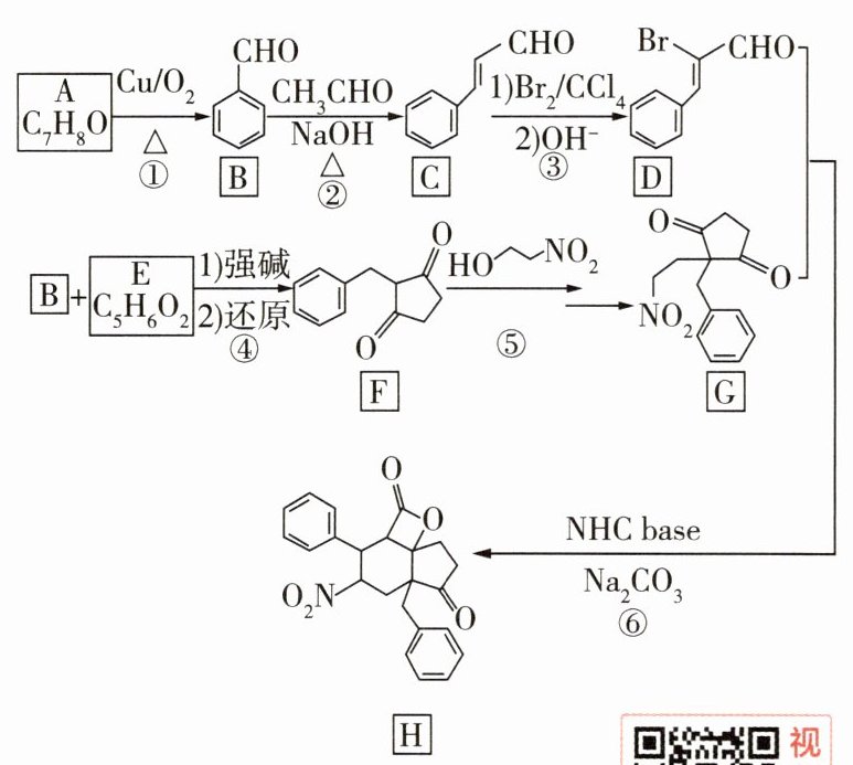 11. (全国卷)用 N-杂环卡宾碱 (NHC base) 作为催化剂,可合成多环化合物。下面是一种多环化合物 H 的合成路线(无需考虑部分中间体的立体化学)。