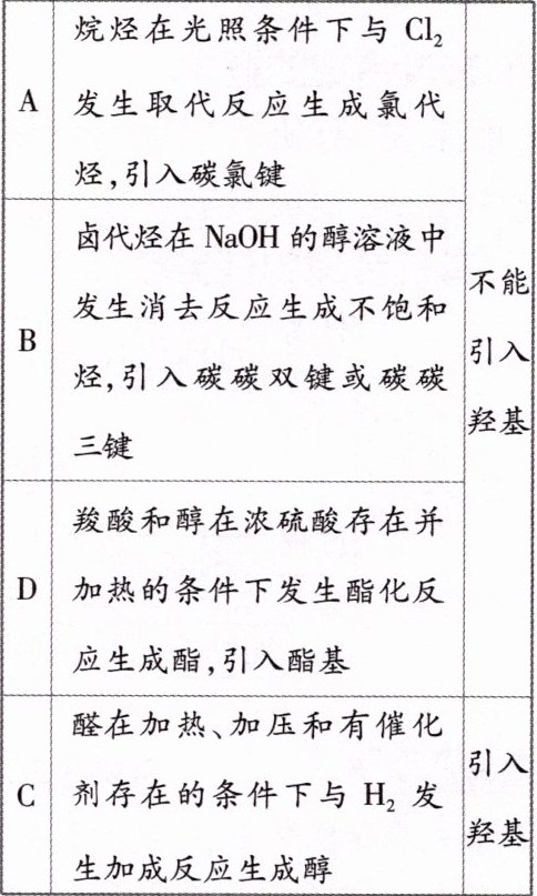 例2-5 (2025河北唐山联考)有机合成的主要任务之一是引入目标官能团。下列反应中,能够在有机化合物碳链上引入羟基的是