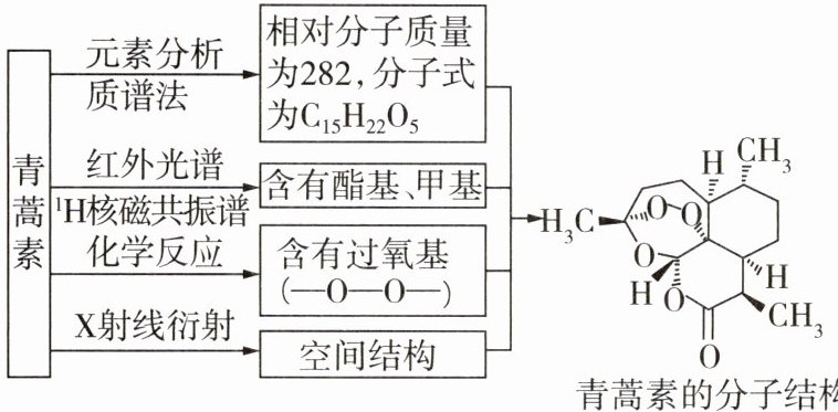 D 项:红外光谱能确定青蒿素分子中含有的化学键或官能团信息( √ )。