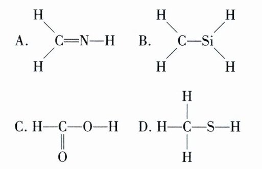 解析 在有机物中,C、Si能形成4个共价键,N能形成3个共价键,而O、S能形成2个共价键,据此分析,选项B中C和Si都只形成了3个共价键,其成键情况不合理。