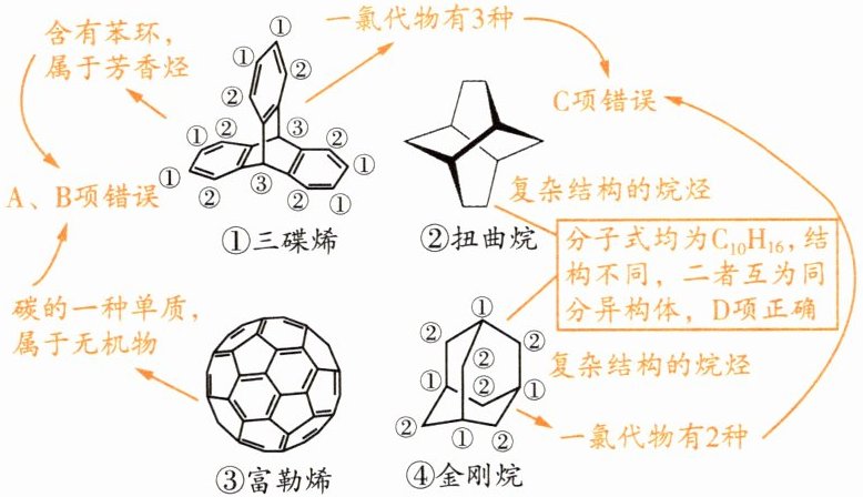 +例 17 (2025 广东惠州一中期中) 欧美三位科学家因“分子机器的设计与合成”研究而荣获 2016 年诺贝尔化学奖。纳米分子机器研究进程中常见机器的“车轮”组件如图所示。下列说法正确的是