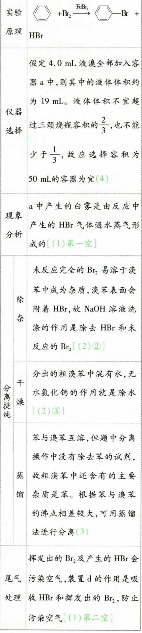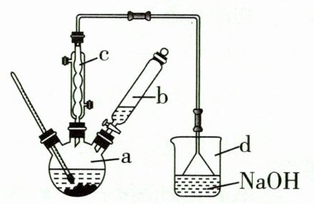 (1)在 a 中加入 15 mL 无水苯和少量铁屑。在 b 中小心加入 4.0 mL 液态溴。向 a 中滴入几滴溴,有白色烟雾产生,是因为生成了气体。继续滴加至液溴滴完。装置 d 的作用是。