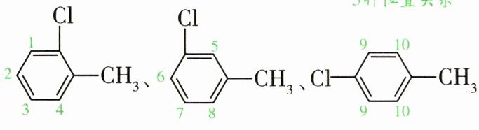 解析▶ 甲苯的苯环上有 5 个氢原子,若有 2 个氢原子分别被羟基(—OH)和氯原子(—Cl)取代,相当于苯环上有 3 个取代基,采用“定二移一”法(可以固定甲基和氯原子,移动羟基)进行分析: