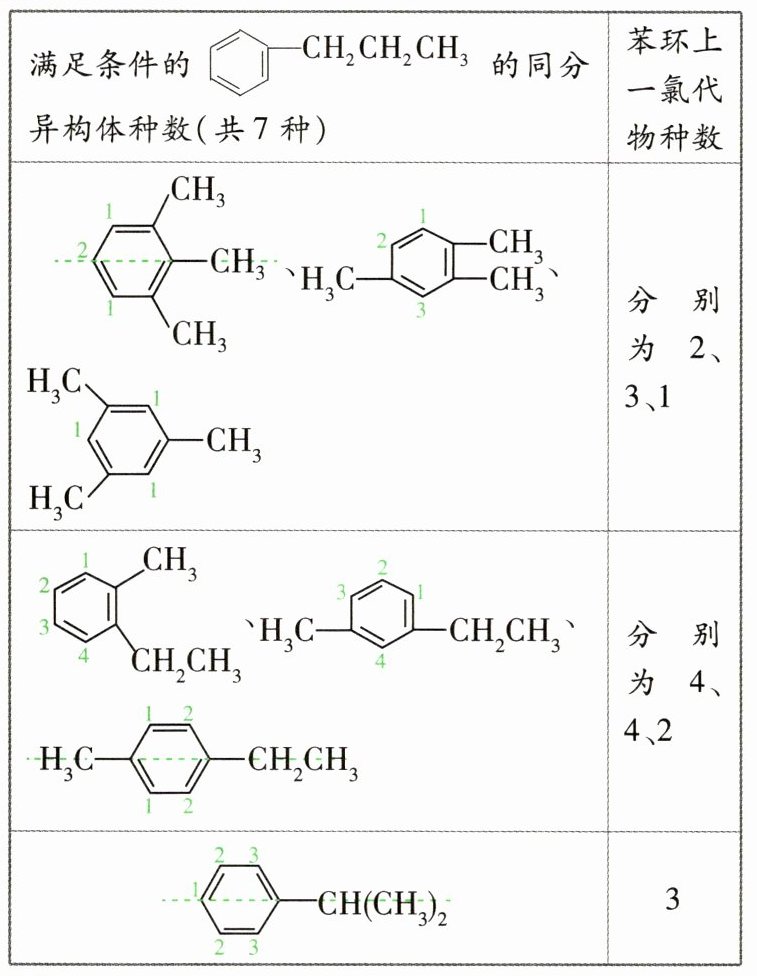 (3) 若题目要求分析其他苯的同系物的同分异构体的数目,可运用类似的解题思路。通过建构模型,使抽象问题变得直观,可将复杂问题简单化,是学习有机化学的重要方法。