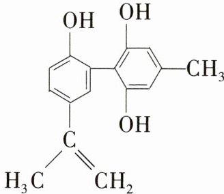 能使酸性$\mathrm{KMnO}_4$溶液褪色的结构有酚羟基、碳碳双键、苯环上的甲基等,因此向该有机物中滴入酸性$\mathrm{KMnO}_4$溶液,观察到酸性$\mathrm{KMnO}_4$溶液紫色褪去,不能证明该有机物中一定存在碳碳双键,B 项错误。1 mol 该有机物与浓溴水反应时,酚羟基邻、对位上的氢原子被溴原子取代,碳碳左边苯环上酚羟基邻、对位上只有 1 个氢原子,右边苯环上酚羟基邻、对位上有 2 个氢原子