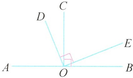 2. 如图所示,已知$∠BOC = 90°$,$∠DOE = 90°$,图中相等的角有几对?