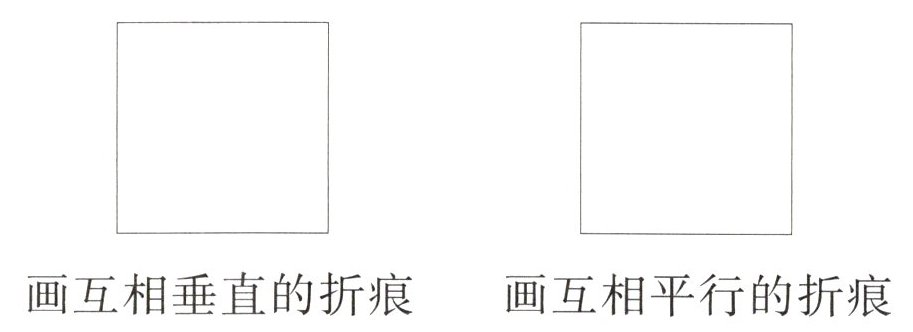 a. 用一张正方形纸,对折两次,怎样折,折痕互相垂直?怎样折,折痕互相平行?试着用不同的方法折一折,并在下面正方形中画出折痕。