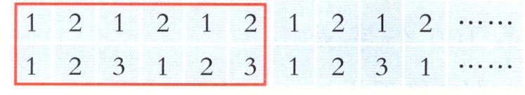 3. 可以发现,第一行是 2 个数字为一周期,第二行是 3 个数字为一周期,公共周期为 6。