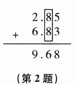 2. 下边竖式计算 2.85+6.83,“8”加“8”得(