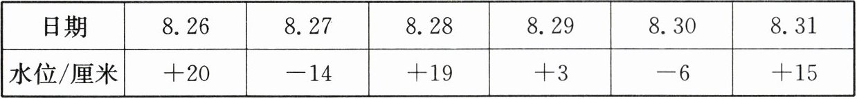 1. 如图记录了从8月26日到8月31日某条河水位情况(上升记为正,下降记为负)。根据表格回答下列问题。