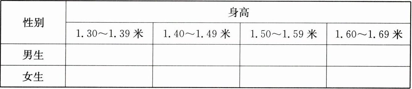 (3) 根据统计图,将五(2)班男生和女生身高人数填在下面的统计表中。