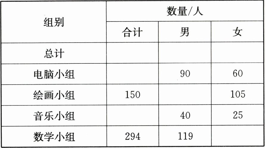 4. 数学小组女生:294(合计)- 119(男)= 175