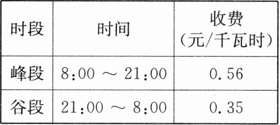 6. 连云港市居民峰谷分时电价如下表。住在连云港的小明家2024年3月用电480千瓦时,其中峰段用电占$\dfrac{3}{5}$;4月的谷段用电量比3月谷段用电量少$\dfrac{1}{6}$。小明家4月的谷段电费多少元?