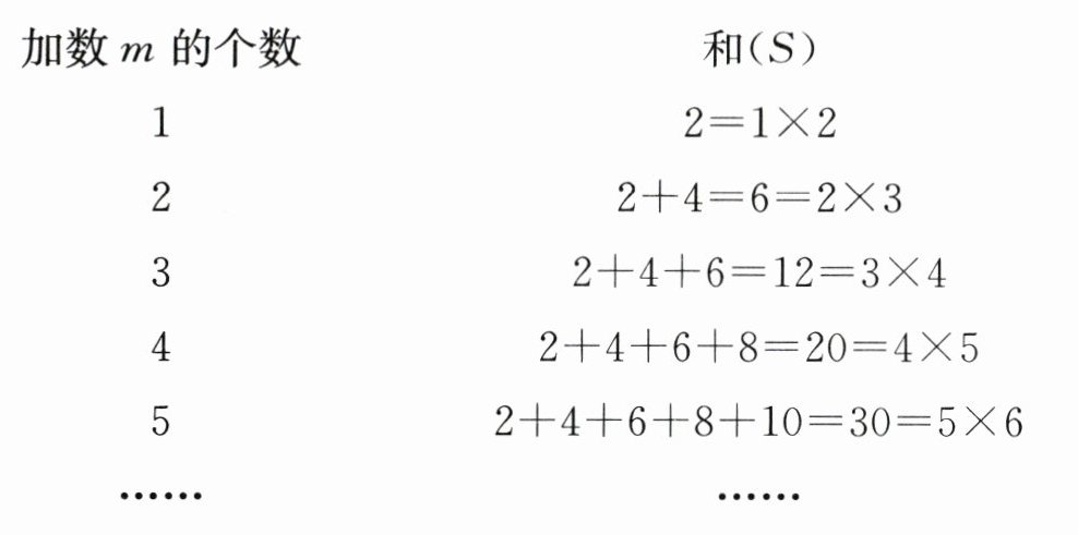(1) 当$n$个连续偶数相加时,它们的和$S$与$n$之间有什么样的关系?用公式表示出来.