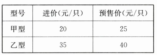 (2) 在实际销售过程中,商店按预售价将购进的全部甲型号节能灯和部分乙型号节能灯售出后,决定将剩下的乙型号节能灯打九折销售,两种节能灯全部售完后,共获得利润 380 元,求乙型号节能灯按预售价售出了多少只.