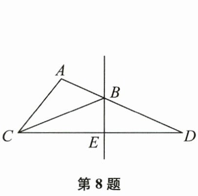 8. 如图,已知$AC = 5\mathrm{cm}$,$AD = 9\mathrm{cm}$,$BE$是线段$CD$的垂直平分线,则$\triangle ABC$的周长为