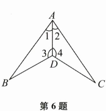 6. 如图,$\angle 1 = \angle 2$,$\angle 3 = \angle 4$,则判定$\triangle ABD$和$\triangle ACD$全等的依据是