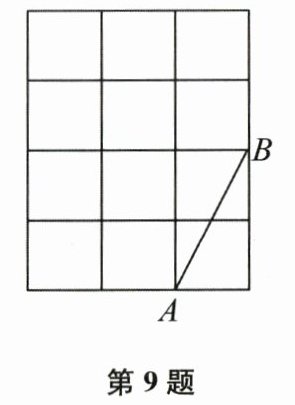 9. 如图,在格点中找一点$C$,使得$\triangle ABC$是等腰三角形,且$AB$为其中的一条腰,这样的点$C$一共有