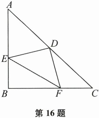 16. (本题10分)如图,在等腰直角三角形ABC中,∠ABC=90°,D为边AC的中点,过点D作DE⊥DF,交AB于点E,交BC于点F,连接EF,若AE=4,FC=3,求EF的长.