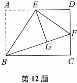 12. (本题8分)如图,在长方形ABCD中,E是AD的中点,将$\triangle ABE$沿直线BE折叠后得到$\triangle GBE$,延长BG交CD于点F,若$AB = 6,BC = 4\sqrt{6}$,求FD的长.
