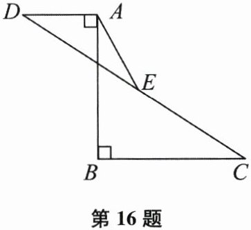 16. (本题10分)如图,已知$AB = 12,AB\perp BC$,垂足为点B,$AB\perp AD$,垂足为点A,$AD = 5,BC = 10$,点E是CD的中点,求AE的长.