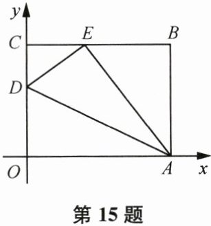 15. (本题12分)如图,四边形 $ OABC $ 是一张放在平面直角坐标系中的长方形纸片, $ O $ 为原点,点 $ A $ 在 $ x $ 轴的正半轴上,点 $ C $ 在 $ y $ 轴的正半轴上, $ OA = 10 $, $ OC = 8 $,在 $ OC $ 边上取一点 $ D $,将纸片沿 $ AD $ 翻折,使点 $ O $ 落在 $ BC $ 边上的点 $ E $ 处,求 $ D,E $ 两点的坐标.