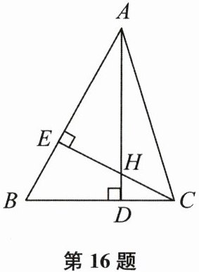 16. 如图,在△ABC中,∠BAC=45°,高AD,CE交于点H.若AB=19,CE=12,则CH=