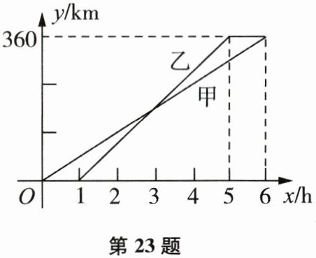 23. (本题12分)甲、乙两人利用不同的交通工具, 沿同一路线从$A$地出发前往$B$地, 甲出发1h后, 乙出发, 设甲与$A$地相距$y_{甲}(km)$, 乙与$A$地相距$y_{乙}(km)$, 甲离开$A$地的时间为$x(h)$, $y_{甲}$, $y_{乙}$与$x$之间的函数图像如图所示.