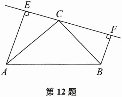 12. (本题8分)如图,在 $ \triangle ABC $ 中, $ AC = BC $,直线 $ l $ 经过顶点 $ C $,过 $ A $, $ B $ 两点分别作 $ l $ 的垂线 $ AE $, $ BF $, $ E $, $ F $ 为垂足, $ AE = CF $.求证: $ \angle ACB = 90° $.