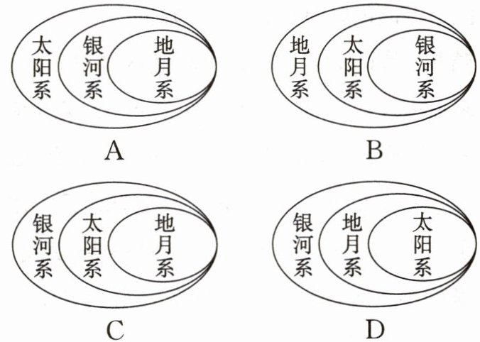 8.C 地月系是太阳系的一部分,太阳系是银河系中的一个星系。银河系与河外星系共同组成目前人类可观测到的宇宙。
