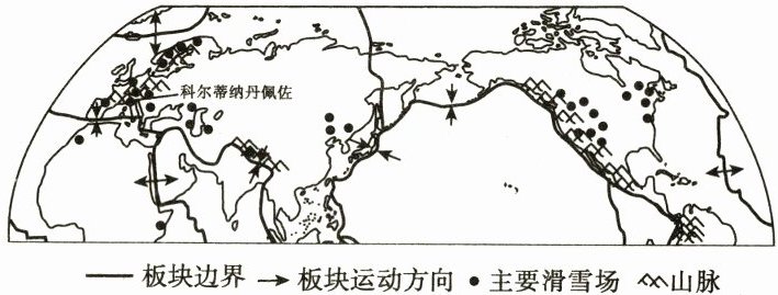 第25届冬季奥运会将于2026年2月6日至22日在意大利的米兰和科尔蒂纳丹佩佐举行。读北半球主要滑雪场分布图,完成17~18题。