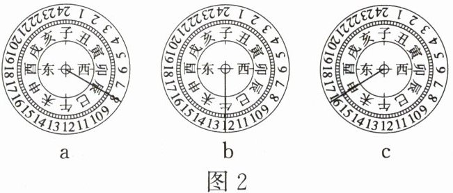 日晷(图 1)是我国古代利用日影测得时刻的一种计时仪器,其原理是利用晷针的影子在晷面上移动的位置来显示时刻变化。图 2 为晷针影子移动示意图。读图,完成 7~8 题。