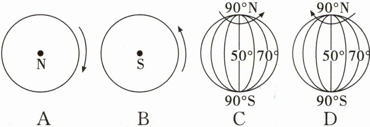 1. 下面四幅图中,表示地球自转方向正确的是 (