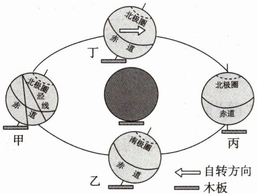 某同学用乒乓球、木板、铁丝等物品制作的简易模型演示地球的运动。下图是其制作前绘制的演示简图。读图,完成 3~4 题。