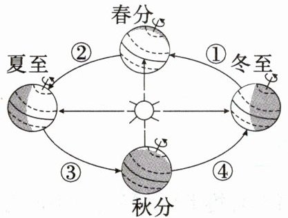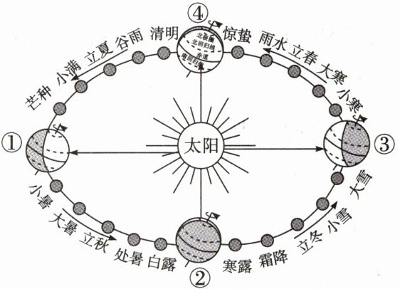 10. “风雷送暖入中春,桃柳着装日日新。赤道金阳直射面,白天黑夜两均分。”此诗中描写的节气位于图中 (
