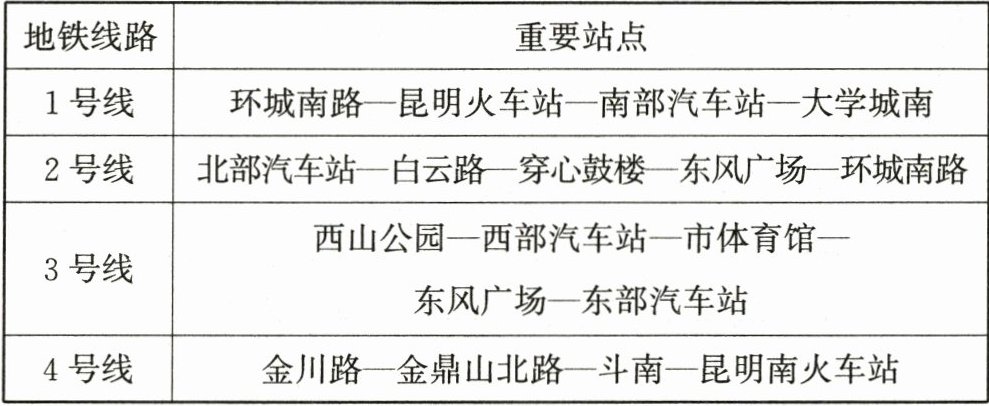 昆明部分地铁线路重要站点