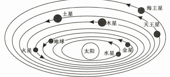 注:太阳系各天体体积及天体之间的距离未按实际比例绘制。