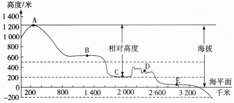 海拔和相对高度是表示高度的两种不同方式。读图,完成 1~2 题。