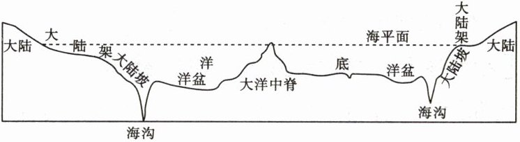 3. 如同陆地地形一样,海洋底部也是高低起伏,形态多样。读海底地形剖面示意图,可知大陆架具有的特点是(