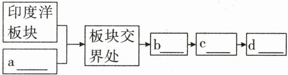 3. 将序号填入正确方框中,完成喜马拉雅山脉不断抬升、珠穆朗玛峰不断“长高”的因果关系框图。