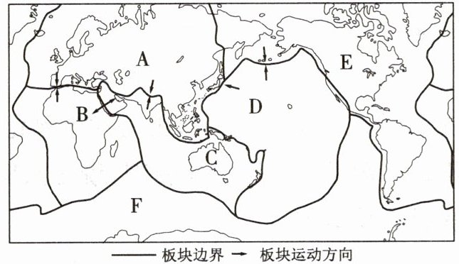 (1)地球岩石圈是由板块拼合而成的。全球大致划分为