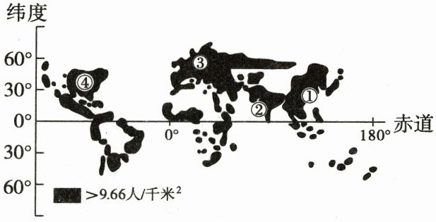 人类密集分布地区称“人类大陆”。读“人类大陆”分布图,完成4~6题。