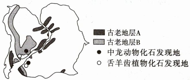 3 B 4 A 第3题,读图可知,中龙动物化石发现地有南美洲东部和非洲西南部,且两大陆的轮廓形状基本吻合,所以中龙化石分布现象能够证明两块大陆原本是连为一体的,后来由于大陆漂移发生了分离。第4题,读图可知,两大陆发现了相同的动植物化石,且两大陆轮廓形状基本吻合;两大陆古老地层存在相似性,可以说明两大陆曾经可能连为一体,后来由于大陆漂移发生了分离。