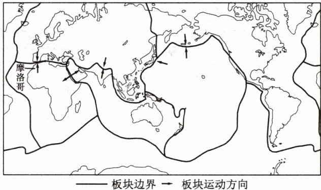 4. 北京时间2023年9月9日6时10分,摩洛哥($31.00^{\circ}N$,$8.55^{\circ}W$)发生6.9级地震,震源深度10千米。某校地理兴趣小组准备就此展开探究,读图并结合所学知识,与他们一起探究。