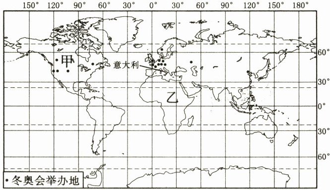 (4)据图可知,乙大洲从未举办过冬奥会,结合图文材料,试分析其自然原因: